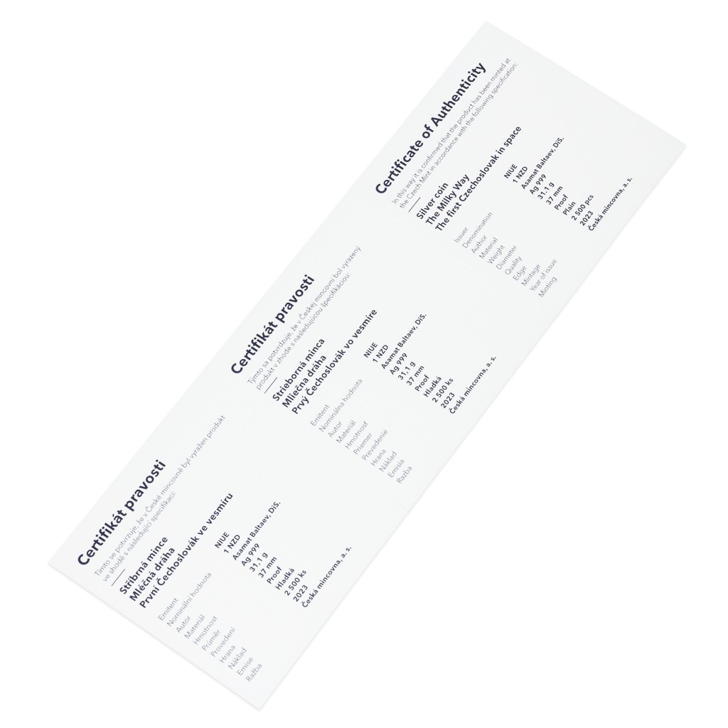 Sběratelská investiční mince 1 NZD Mléčná dráha První Čechoslovák ve vesmíru 1 Oz Ag 2023 Proof v originální kožené etuji s certifikátem.