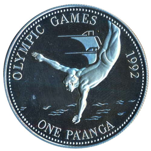 Sběratelská investiční mince 1 Pa’anga LOH Barcelona 1992 – skoky do vody Proof