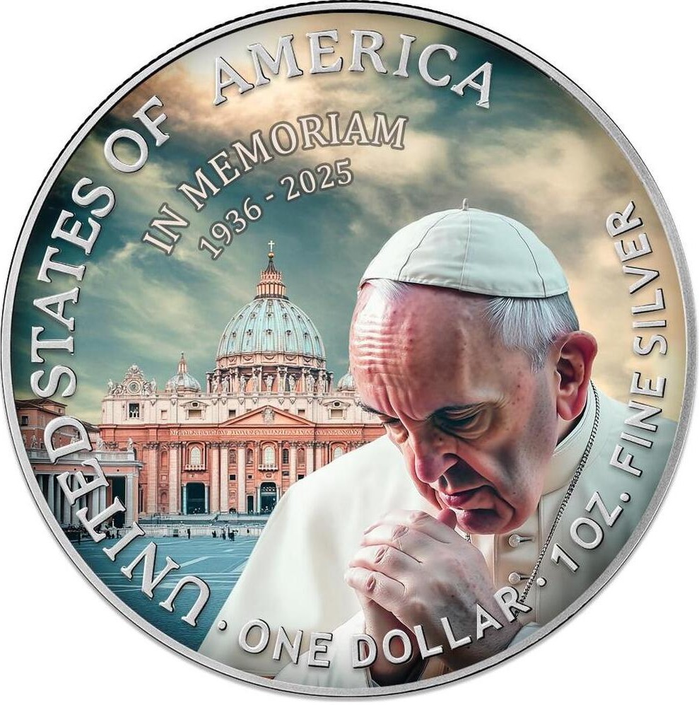 Sběratelská investiční mince 1 USD American Eagle Papež František In Memoriam 1 oz Ag 2025
