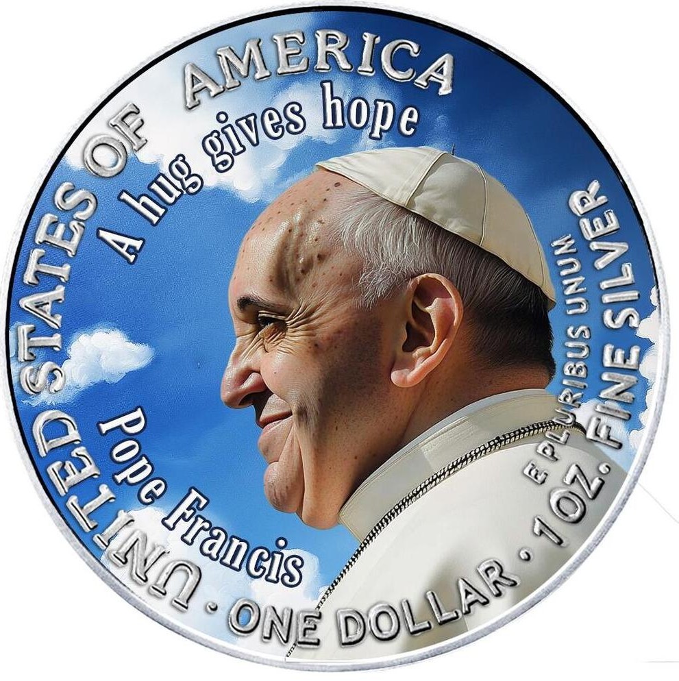 Sběratelská investiční mince 1 USD American Eagle Papež František Pozdrav 1 oz Ag 2025