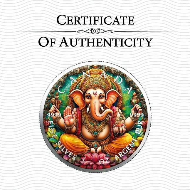 Sběratelská investiční mince 5 Dollars Kultura Indie Ganéša 2025 Kolorováno. Mince je v plastové kapsli s certifikátem.