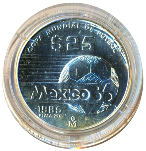 Sběratelská investiční sada stříbrných mincí 25 + 50 + 100 Pesos MS ve fotbale Mexiko 1986 – b.k.