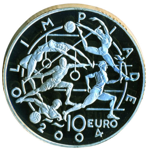 Sběratelské investiční mince – set 5+10 Euro LOH Athény 2004 – Proof v originální kazetě. Mince jsou v bezvadném stavu. Semiš na kazetě mírně lokálně odřený.